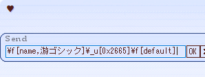 @ハート \f[name,游ゴシック]\f[color,255,0,0]\_u[0x2665]\f[default]