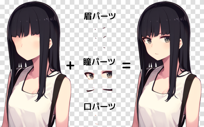 表情などの差分はできるだけ透明部分(元絵の外縁部)を含めないように切り取るのがポイント。